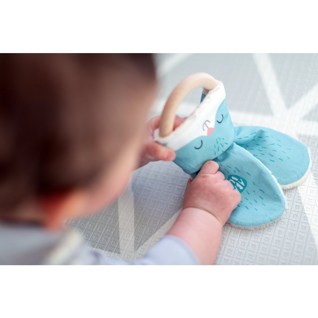 - Tvar a velikost jsou ideální pro malé dětské ručičky. Při pokusech o první úchopy jemně praská. Zamotané uši můžete podle chuti rozvázat, ale jeho uzlíky se budou báječně ocucávat. Zadní strana z bambusového heboučkého froté je super savá a odvede veškerou vlhkost při ocucávání. Bambus je přirozeně antiseptický a uschne závratnou rychlostí.