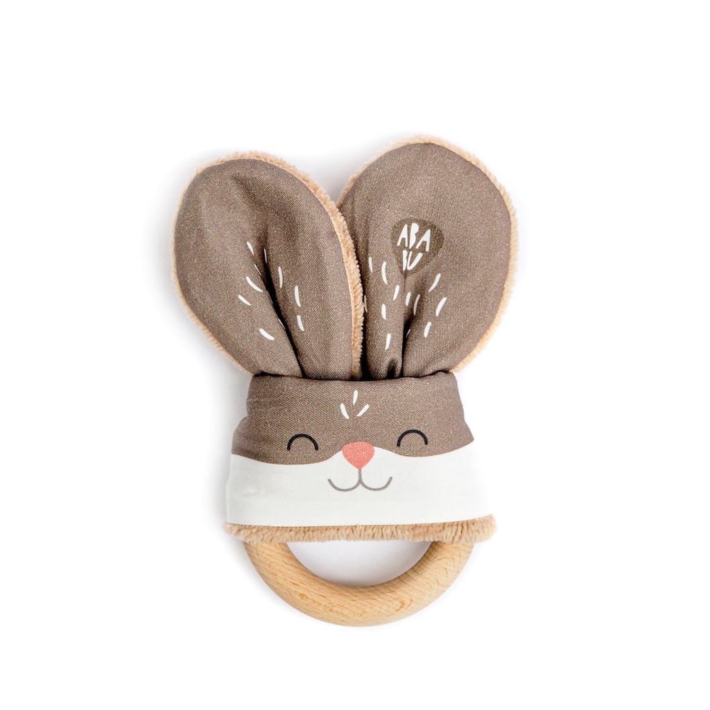 Jsem šustivý kamarád pro miminko (0 - 2 roky), které trápí zuby. Dásně svědí, bolí a miminko slintá a zkouší kousat vše včetně své ručičky. Dejte mu do ní tohohle ušatce a máte vystaráno. Dřevěný kroužek uleví od bolesti dásní při prořezávání zoubků. Dřevo působí antibakteriálně a je mnohem vhodnější než plasty. Různé materiály odvádí pozornost od bolesti.