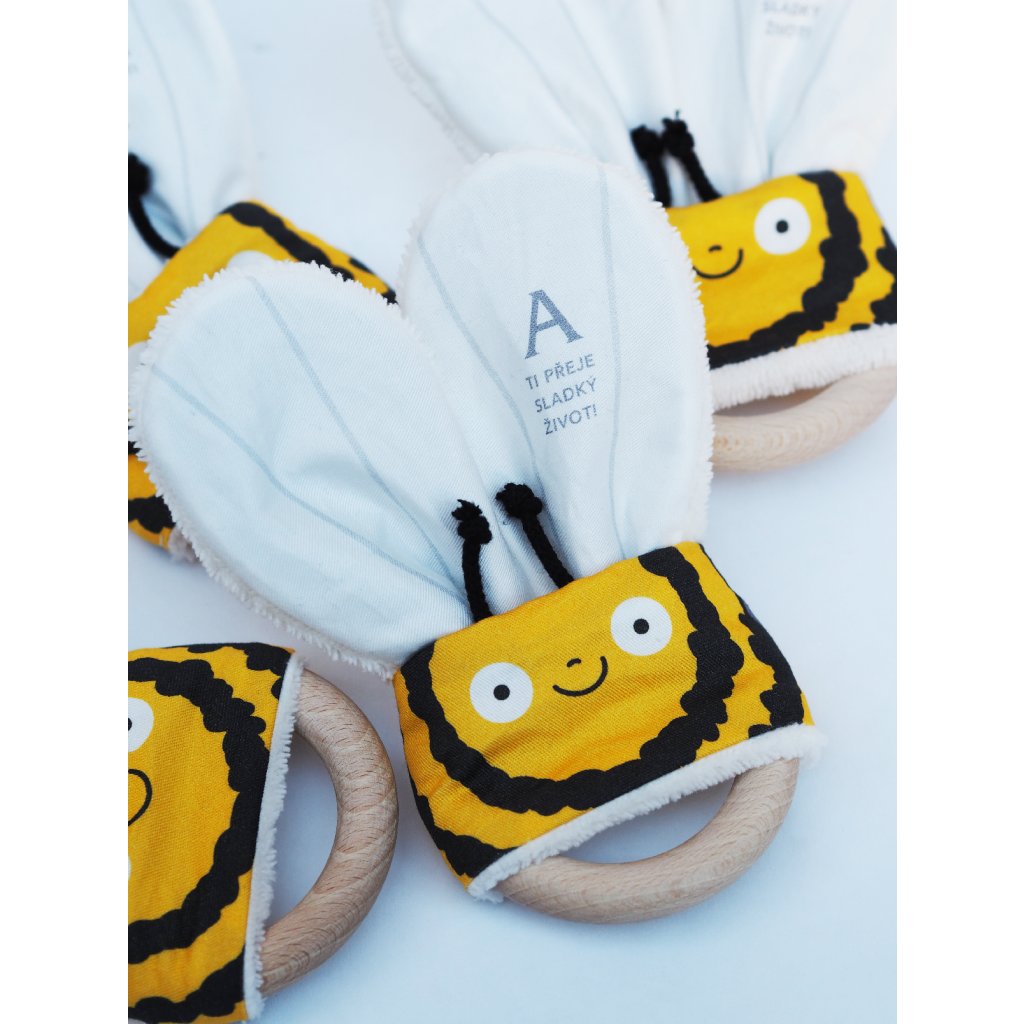 Jsem šustivý kamarád pro miminko (0 - 2 roky), které trápí zuby. Dásně svědí, bolí a miminko slintá a zkouší kousat vše včetně své ručičky. Dejte mu do ní tohohle ušatce a máte vystaráno. Dřevěný kroužek uleví od bolesti dásní při prořezávání zoubků. Dřevo působí antibakteriálně a je mnohem vhodnější než plasty. Různé materiály odvádí pozornost od bolesti.