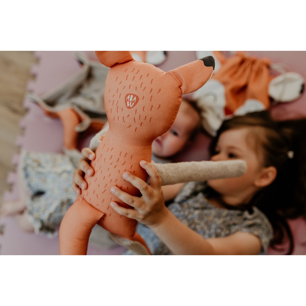 Upozornění: Hračky jsou ušité ze 100% bavlny, což je materiál, který neumožňuje potisk bez drobných vad. Výskyt malých světlých teček na látce je tedy běžný a není brán jako závada.