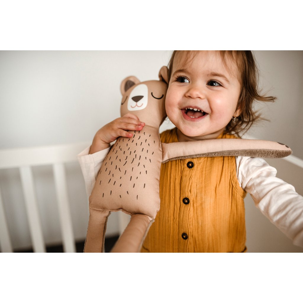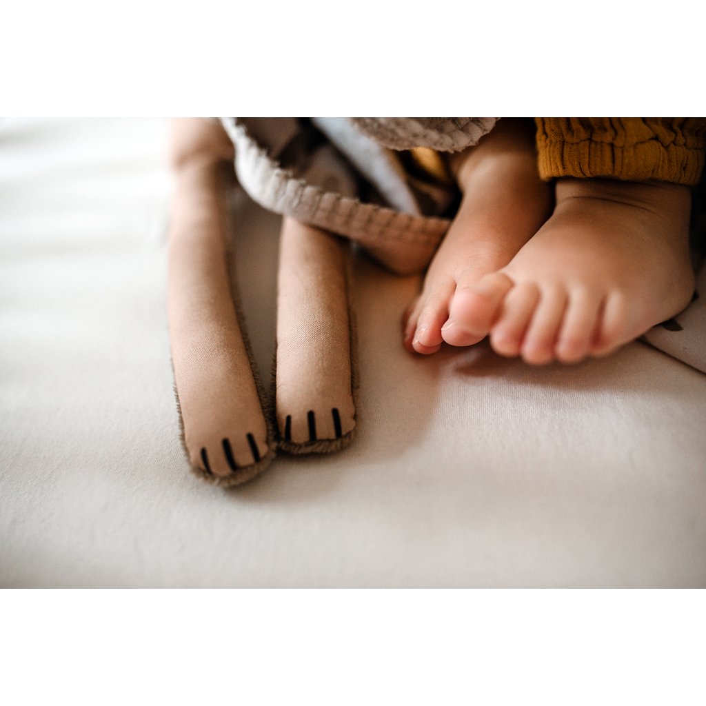 Jsem 50 cm velký nohatý parťák do nejmenších rukou. Dokážu uklidnit a uspat všechny děti od miminka po předškoláky. Na mých úzkých nohách si mohou miminka trénovat své první úchopy. Díky kvalitnímu zpracování budu se svým malým majitelem spoustu let. Hebké bambusové froté na nožičkách zvládne utišit a zabavit každé miminko. Bambus je přirozeně antiseptický, super savý a uschne závratnou rychlostí.
