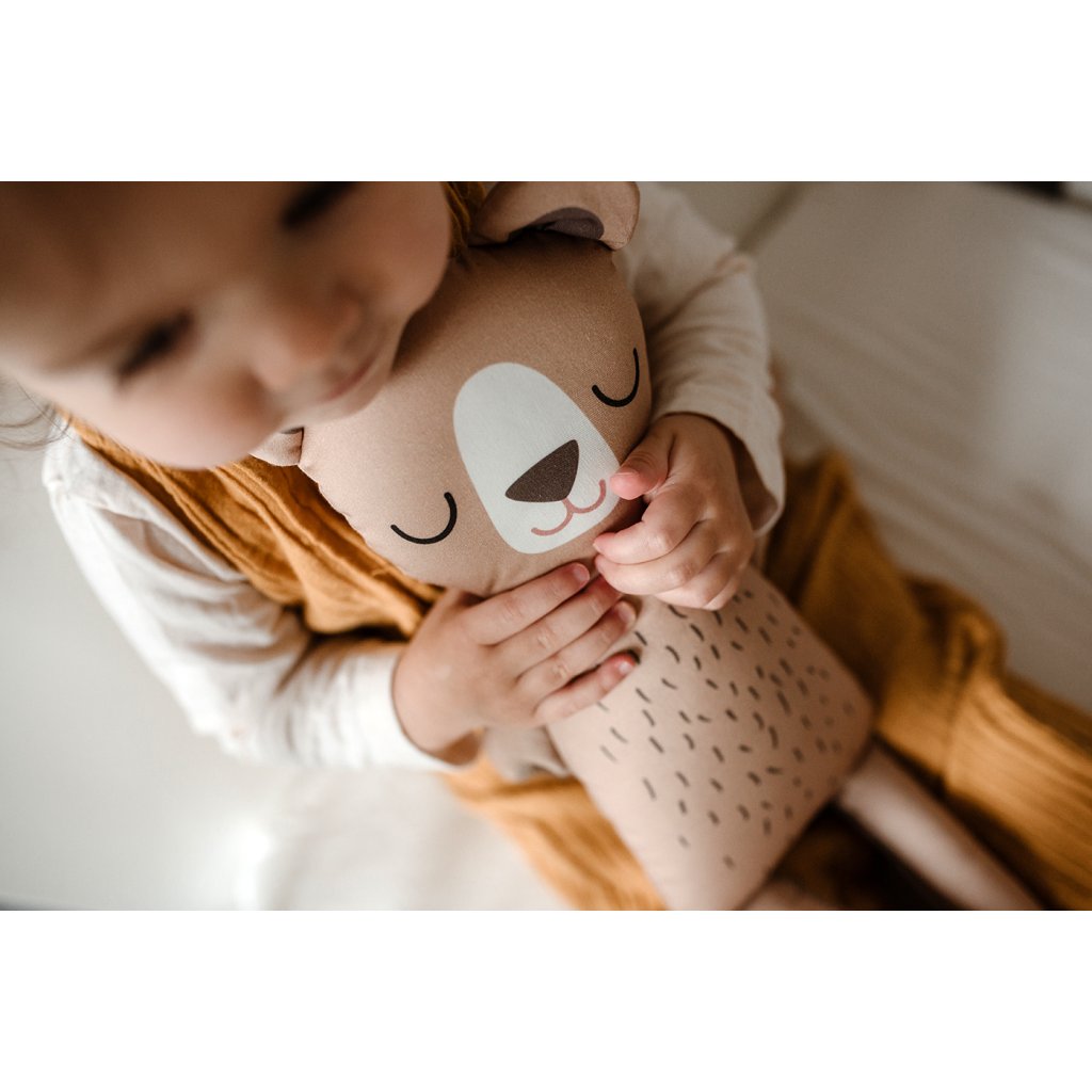 Upozornění: Hračky jsou ušité ze 100% bavlny, což je materiál, který neumožňuje potisk bez drobných vad. Výskyt malých světlých teček na látce je tedy běžný a není brán jako závada.
