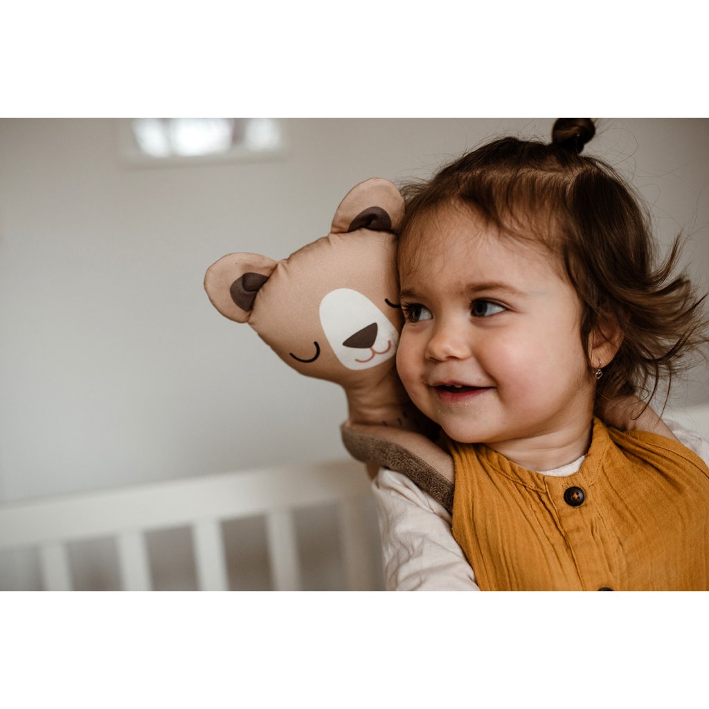 - Obličej mám z potištěné látky ze 100% bavlny s atestem pro děti do 3 let (autorská ilustrace, tištěno digitálně v ČR).