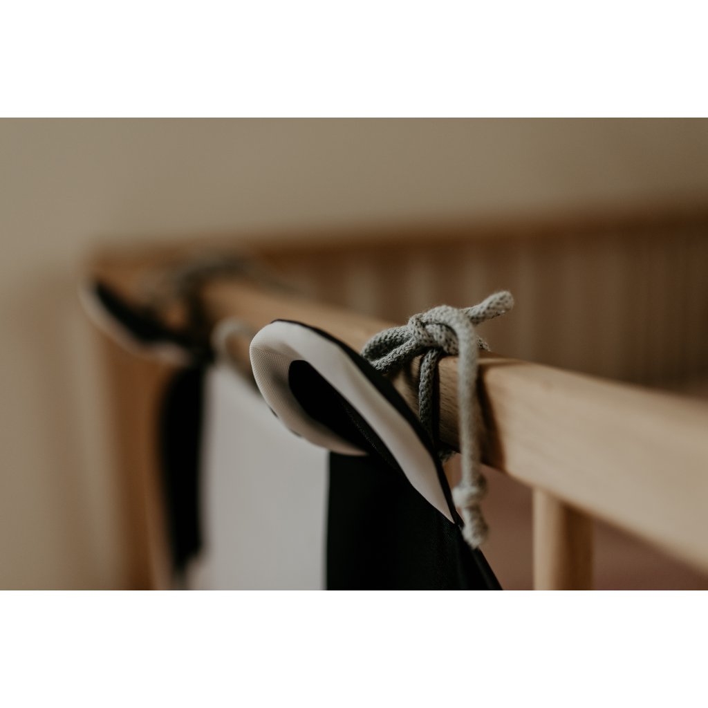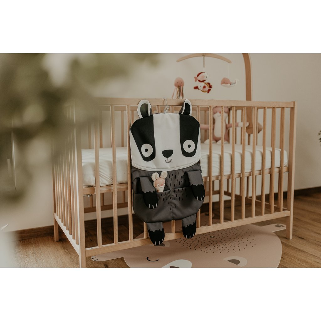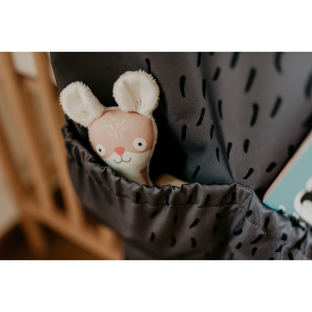 Kapsář má ideální velikost, skvěle drží tvar a díky třem způsobům zavěšení jej snadno upevníte na kdejaký školkový háček, zezadu na přední sedadlo auta nebo na postýlku. Součástí balení je dřevěné ramínko poctivé české výroby.