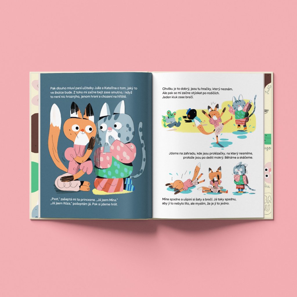Jaké to je, když se ti nechce do školky? A proč se tam musí po obědě spát? Hugo a Róza začali chodit do školky a čeká je tam spousta dobrodružství. A třeba i takových, která se dospělým zdají bezvýznamná. Texty Petry Soukupové, oblíbené autorky oceňovaných knih pro děti i dospělé, doprovázejí originální ilustrace Patrika Antczaka, v nichž školka ožívá jako svět plný barev, emocí a malých vítězství. Oboustranná kniha pro všechny, kteří někdy nechtěli spát nebo jít do školky – a jejich rodiče, kteří to moc dobře znají.