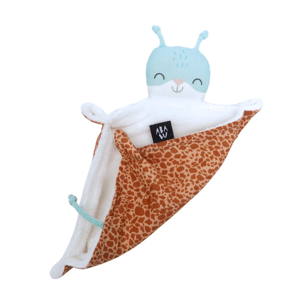 Jsem mini verze našeho bestselleru — heboučký kamarád stvořený pro ty nejmenší ručičky. Pomáhám miminkům při uspávání a dodávám jim pocit bezpečí. V mém růžku se ukrývá šustivá folie, která přirozeně zaujme dětskou pozornost a podporuje smyslové vnímání. Za hlavičkou navíc najdete poutko, na které můžete připevnit například naše praktické plastové očko.