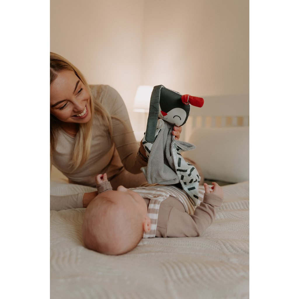 Na bříško můžete použít savé froté, které pomáhá utišit a zachumlat každé miminko. Stačí ho po ušití navonět (10 min pod tričkem) mámou nebo tátou a hned se stane tím nejlepším parťákem.
