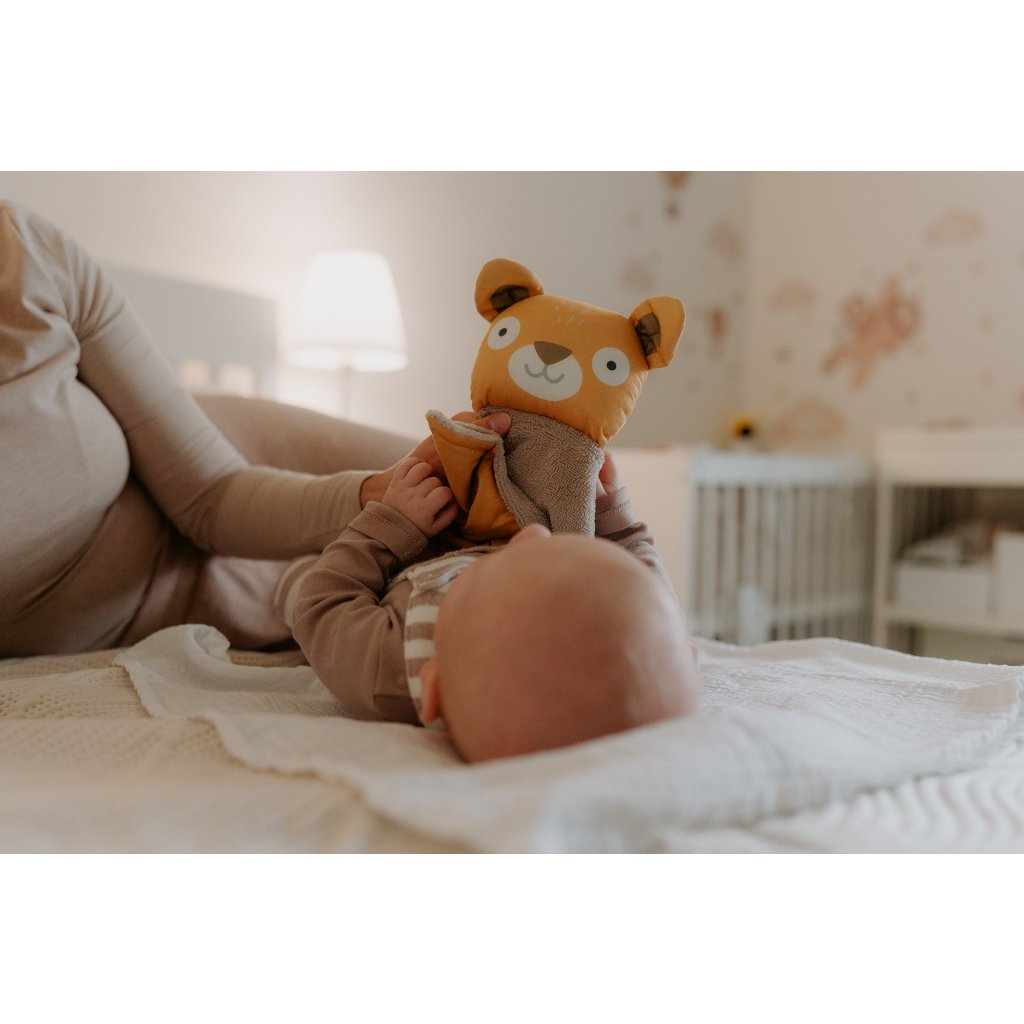 Na bříško můžete použít savé froté, které pomáhá utišit a zachumlat každé miminko. Stačí ho po ušití navonět (10 min pod tričkem) mámou nebo tátou a hned se stane tím nejlepším parťákem.