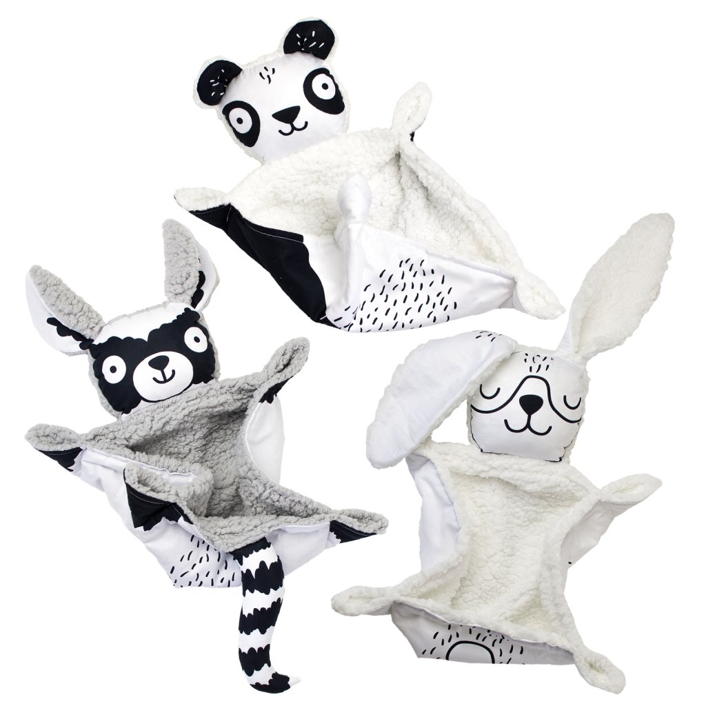 - 3 muchláčky (mývala, pandu a zajíčka), černobílá miminka fascinuje mnohem více než barvy
