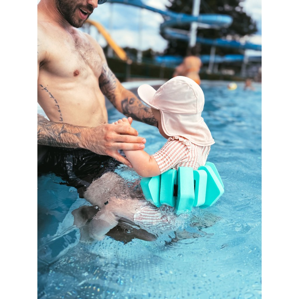 - Plavecké pásky nadnášejí dítě v oblasti pasu, což podporuje horizontální polohu těla a správnou techniku plavání.