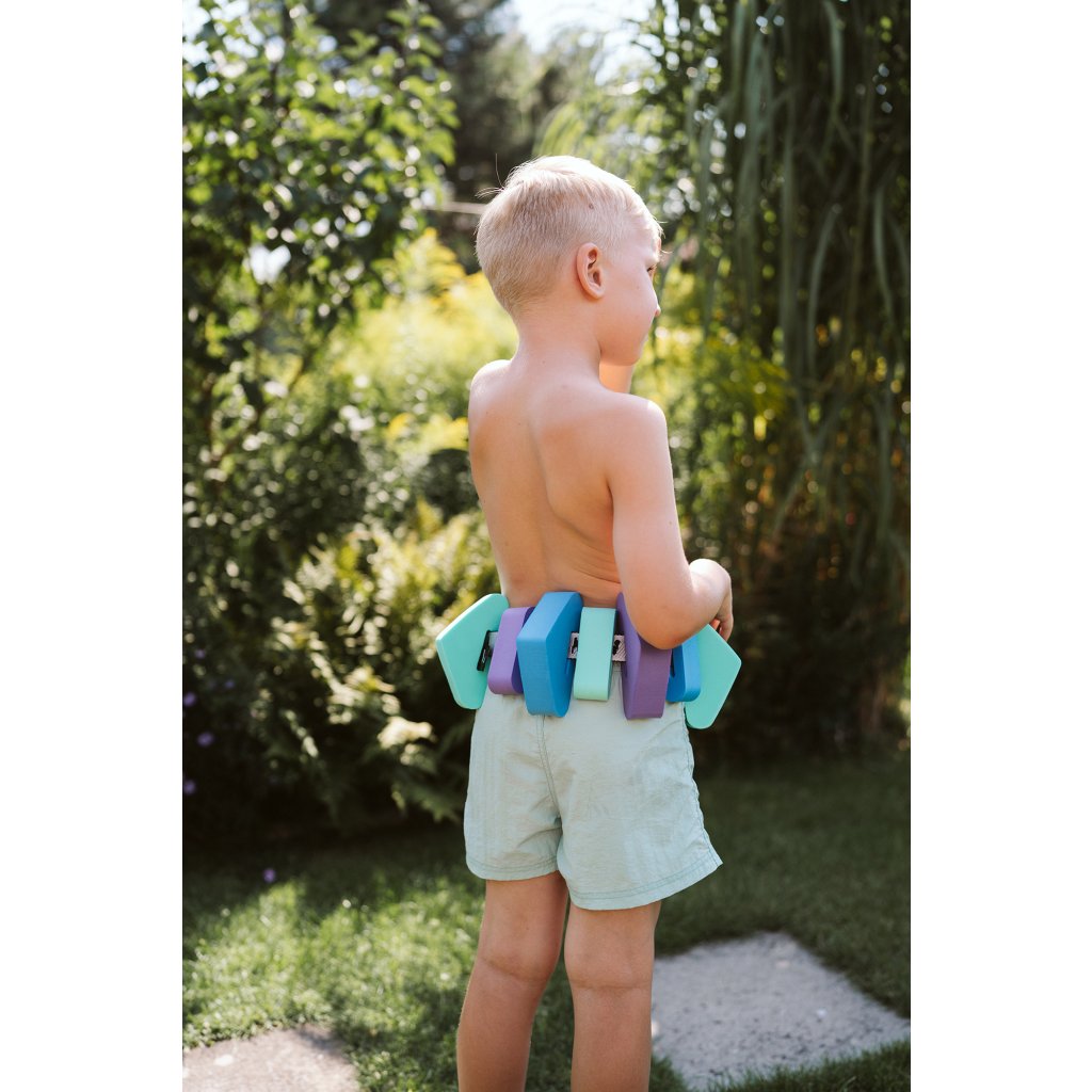 Plavecký pás je pomůcka určená pro vodní sporty pod dozorem dospělé osoby. Umístění plaveckého pásu: pás se připevní kolem pasu dítěte, velikost upravíte dle obvodu. Plavecký pás pomáhá udržet stabilitu dítěte na vodě. Menším dětem můžete jeden nebo dva pěnové dílky vytáhnout. Je dobré kombinovat plavecký pás s nadlehčovacími rukávky, kroužky nebo křidélky na ruce. Zajistíte tak lepší stabilitu těla dítěte na vodě.
