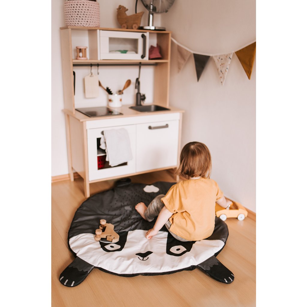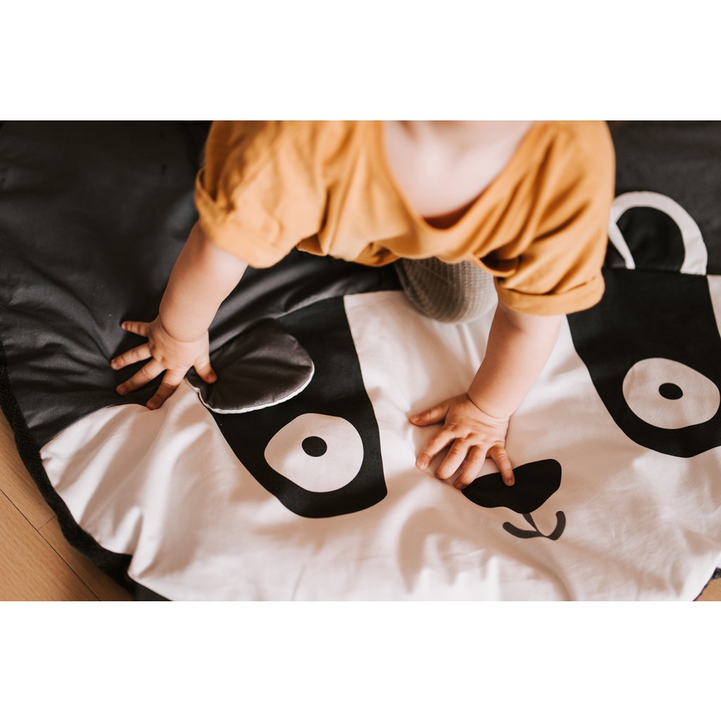 Jsem hrací deka 2v1! Jsem ideální pod hrací hrazdičku, na trénování pasení koníků nebo protažení kdekoliv je potřeba. Spodní strana je z bambusového heboučkého froté, které je super savé a přijde vhod na chladnou zem. Moje šustící ouška jsou skvělá k zabavení ruček.