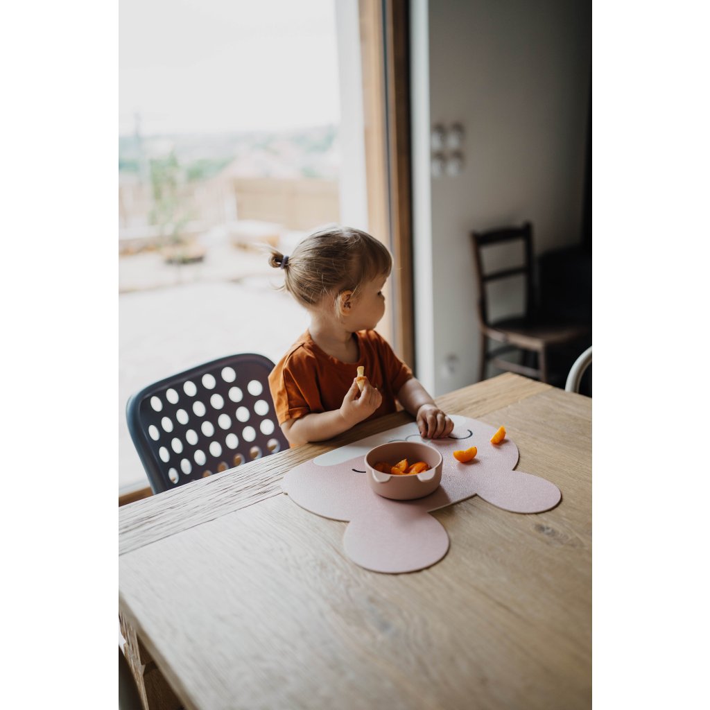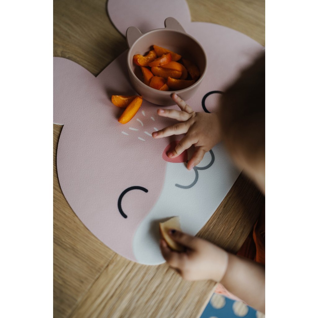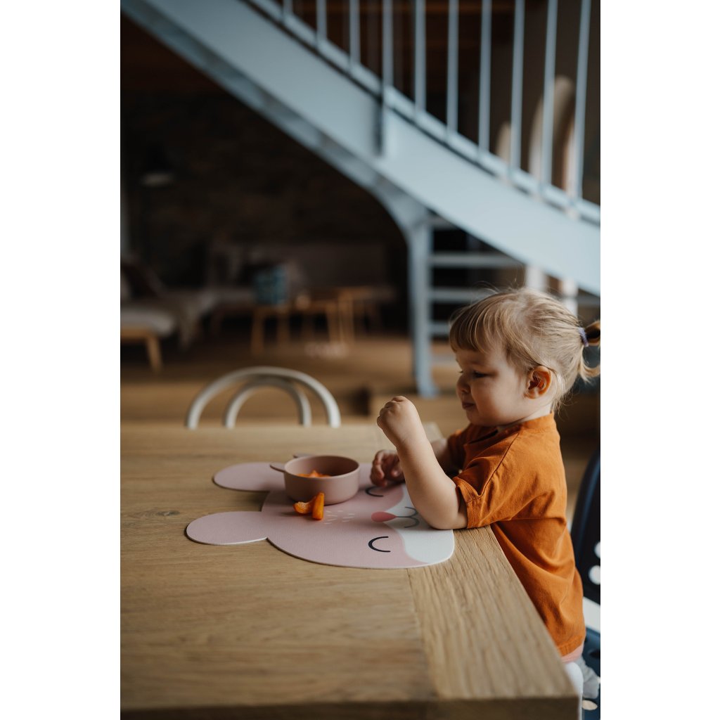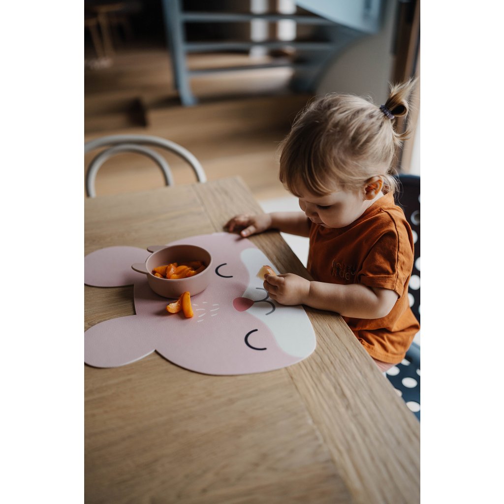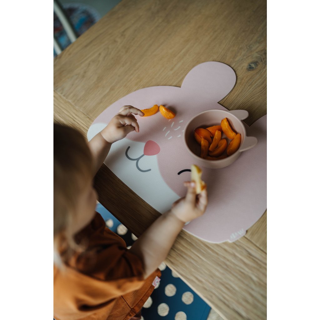 Ušaté prostírání z kvalitního vinylu s certifikací pro bezpečné stolování i těch nejmenších. Má protiskluzový gravírovaný povrch, neklouže a je snadno omyvatelná. Dobře poslouží i jako ochranná podložka na kreativní tvoření.