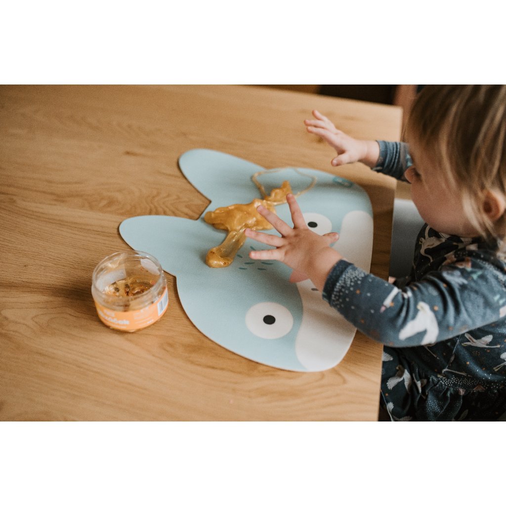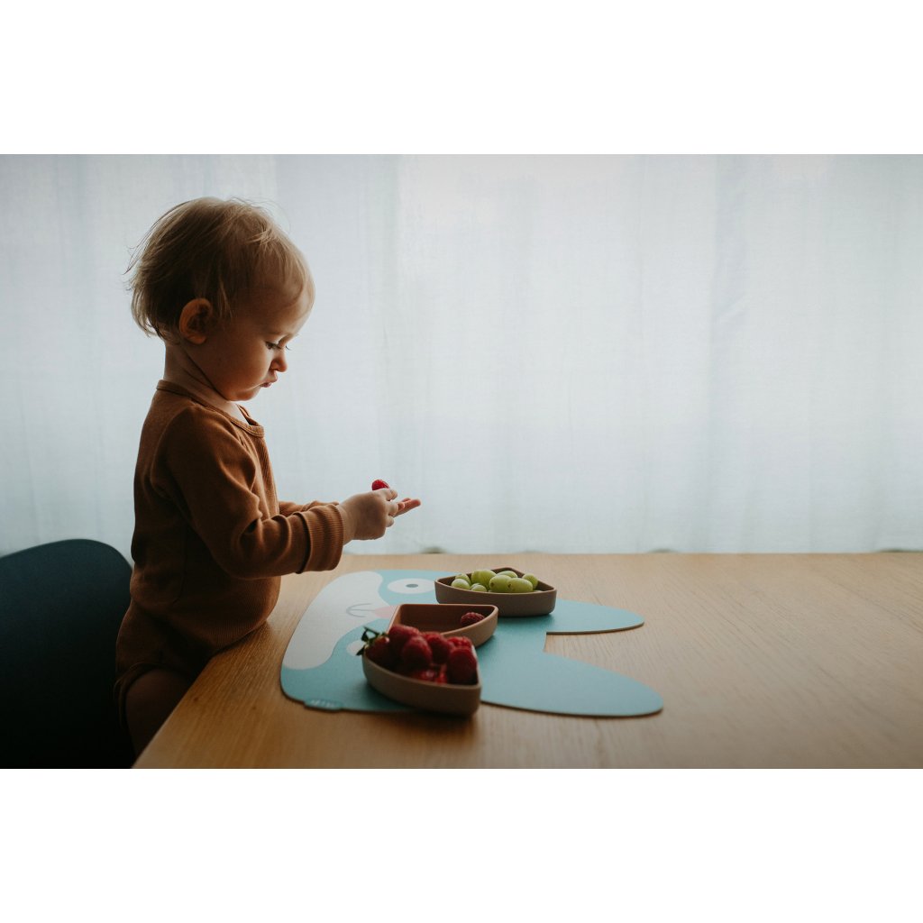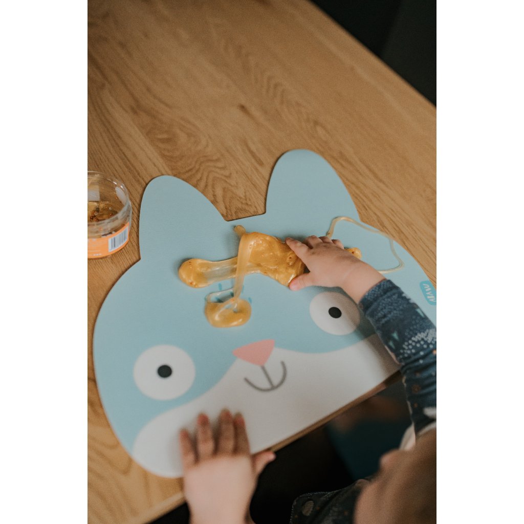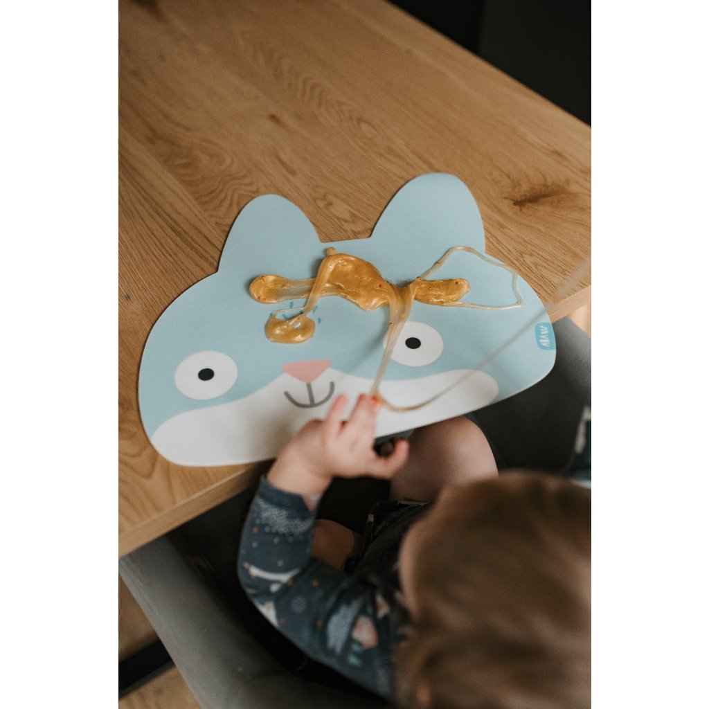 Ušaté prostírání z kvalitního vinylu s certifikací pro bezpečné stolování i těch nejmenších. Má protiskluzový gravírovaný povrch, neklouže a je snadno omyvatelná. Dobře poslouží i jako ochranná podložka na kreativní tvoření.