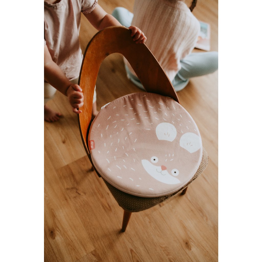 Měkoučký podsedák, který promění každou židličku v oblíbené místo k sezení. Kulatý tvar podprdelky bude pasovat na jakýkoli tvar židle a čistý minimalistický design sedne i do vaší kuchyně, bez toho aby ji barevně rušil. Pokud se nejedlíkovi nechce ke stolu, třeba mu tenhle stočený kamarád do klubíčka pomůže. Podsedák může sloužit i jako záminka k odstranění dětské židličky.
