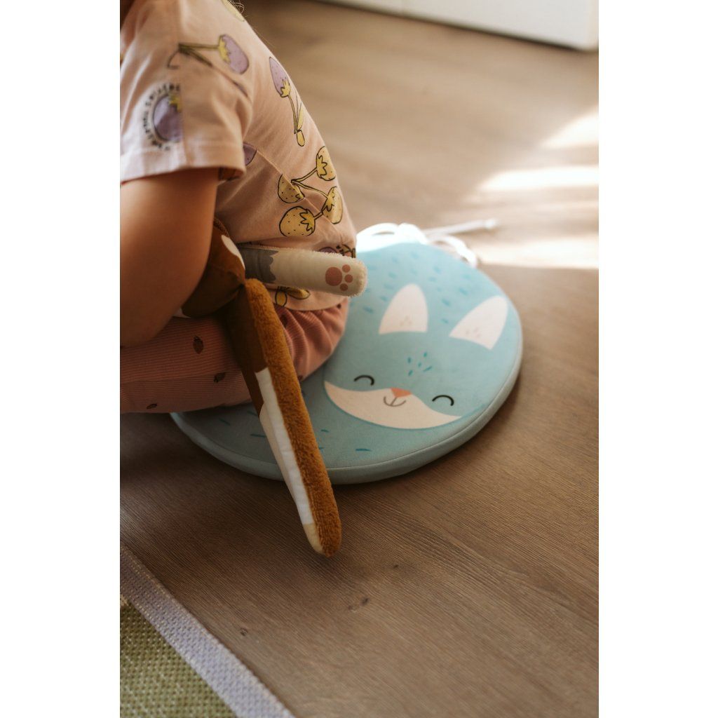 - Na hraní na chladné zemi - Podsedák může být malý polštářek na zem. Ideální na skládání skládaček, hraní s autíčky nebo stavění kostek. Při uvázání šňůrek do mašliček provázky nebudou překážet.