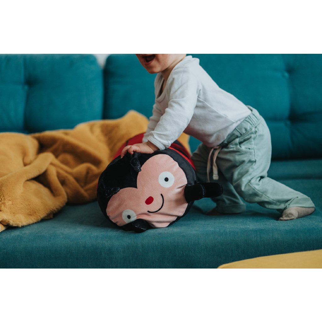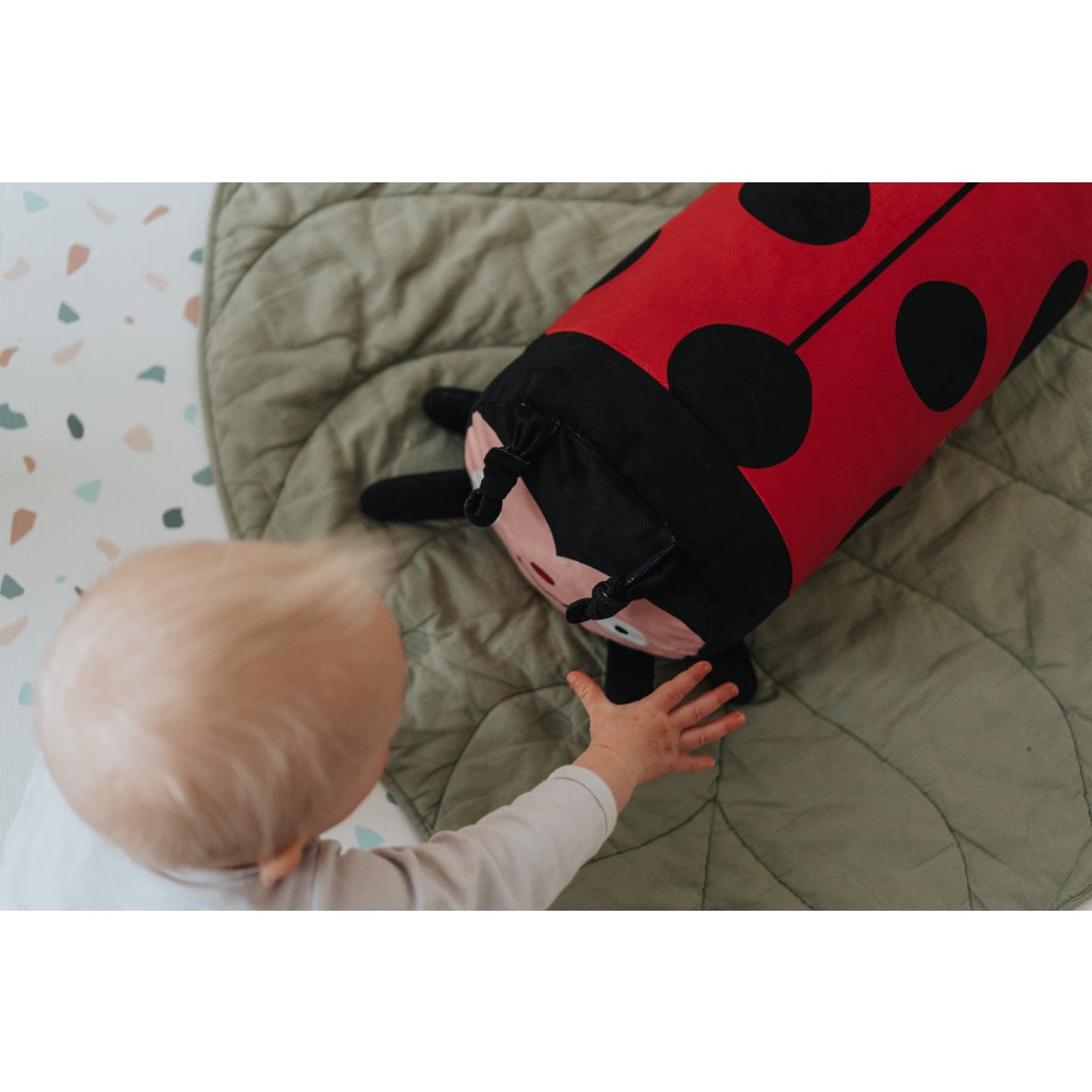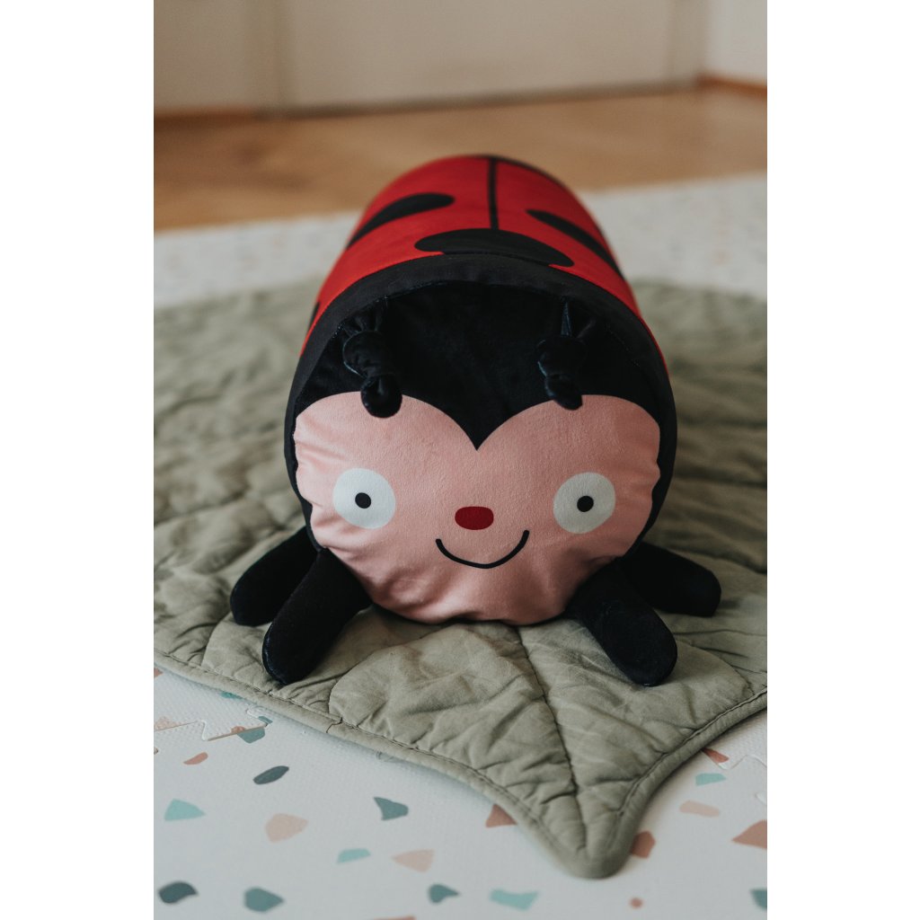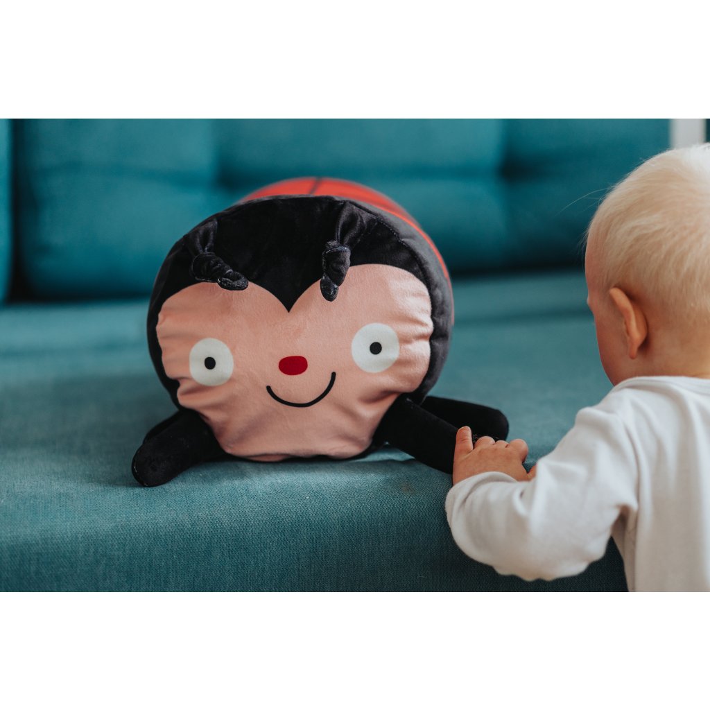 Vtipná beruška ve tvaru válečku ze semišového materiálu.