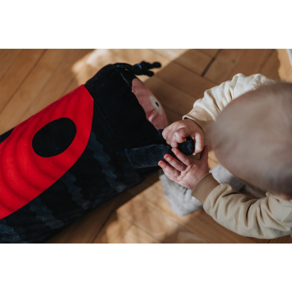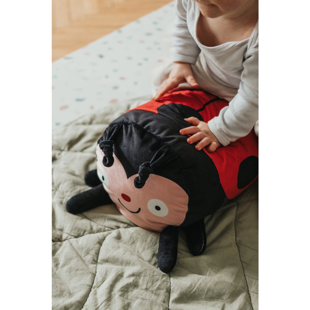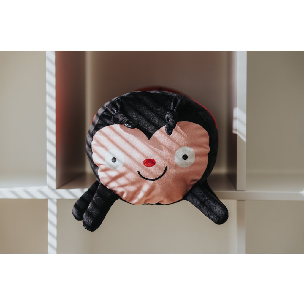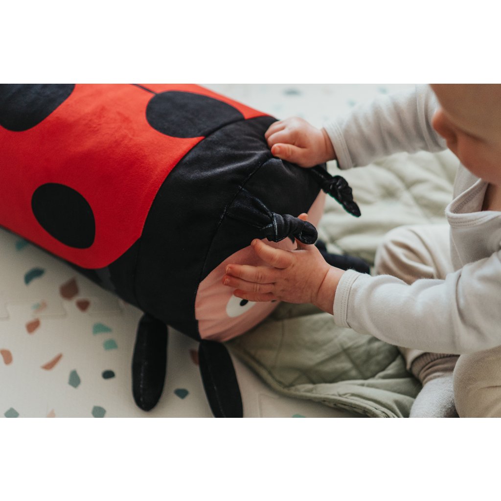 Vtipná beruška ve tvaru válečku ze semišového materiálu.